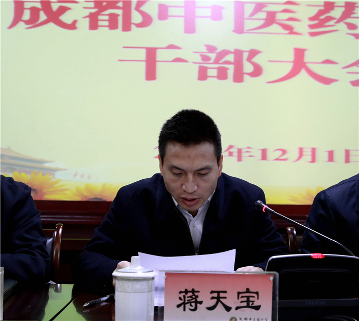 12月1日下午,学校在温江校区行政楼五会议室召开干部大会。副省长杨兴平,省委组织部副部长蒋天宝,省委教育工委书记、教育厅厅长朱世宏出席会议。省教育厅组织干部处处长蔡玉波、省委组织部干部三处副处长张从云,学校领导、中层副职以上干部,职代会、教代会负责人,在校的省、市党代表、人大代表、政协委员,民主党派在校主要负责人,近三年内退出校级领导岗位的老同志,专业技术三级以上人员共计120余人参加了大会。朱世宏主持会议。