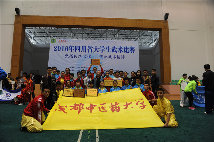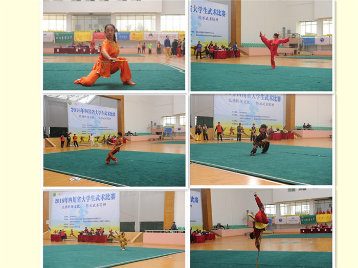 11月2—5日,由四川省教育厅主办、西华大学承办的2016年四川省高校武术套路比赛在西华大学体育馆顺利举行,来至全省28所高校的300多名运动员参加了比赛。pp电子派出由体育学院副院长谢卫任领队、武术教研室教师李光惠、鄢显明、陈孝慧、郑贞任教练,和26名来至不同学院的学生组成的代表团参加了本次比赛。