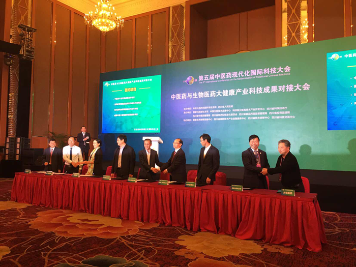 10月24日下午,在第五届中医药现代化科技大会期间,四川省人民政府举办的“中医药与生物医药大健康产业科技成果对接大会”于四川省成都市世纪城国际会议中心隆重举行,省政府副秘书长罗志平出席了会议。会上发布了近年来四川省中医药健康产业取得的成果,同时进行了科技成果与产业资本的对接。学校眼科学院院长段俊国代表pp电子官方网站、太极集团董事会主席白礼西代表投资人,在大会上签订了pp电子官方网站眼科医院项目合作协议。据悉,成都中医大银海眼科医院是目前西部地区最大的眼科医疗项目,医院依托pp电子官方网站中医眼科学国家重点学科,建设医疗、教学、科研三位一体的国际眼科医疗中心。眼科医院预计明年初正式开业运营。