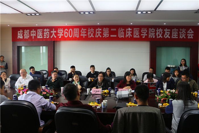 浓浓母校情,依依校友心。10月23日下午2点,借乘学校庆祝60华诞的东风,第二临床医学院校友座谈会在温江校区行政楼四会议室隆重召开。学院党委副书记彭晓英,副院长尹巧芝、朱鸿秋、梁鑫,全体辅导员和学院20余名校友代表参加了本次座谈。座谈会由学院党委副书记彭晓英主持。