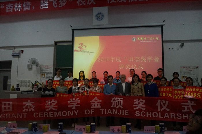 10月24日下午18时,由学校主办、针灸推拿学院/第三附属医院承办的“校庆•校友校园行”名家讲座第十场暨针灸推拿学院/第三附属医院“田杰奖学金”“马里兰州助学金”颁奖仪式在温江校区D107举行。莅临现场的嘉宾、领导和老师有:pp电子79级杰出校友、“田杰奖学金”创立人田忆芳女士,“马里兰州助学金”中方管理人、四川省十大名医、学院老专家张虹教授,退休教师代表范家永老师,学院党委书记、副院长张俭老师,教师代表李燕萍老师,临床医学院团委书记杜晓娟老师,养生康复学院团委书记冯丽娟老师。参加活动的还有学院辅导员和温江校区全体学生。活动由学院党委副书记杜娟主持。