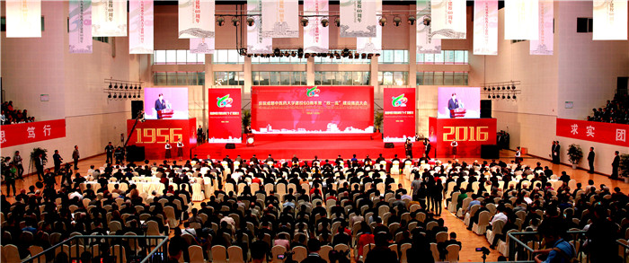 教师代表、国医大师刘敏如教授,校友代表、太极集团董事局主席白礼西,学生代表、针灸推拿学院2014级邓嘉帅同学分别进行发言,恭贺学校60华诞,感谢学校培养,祝福学校未来更加辉煌。刘敏如大师一句“爱我母校,兴我国医”的话语,代表了全校师生对振兴中医药事业、推进学校“双一流”建设的坚定信念。