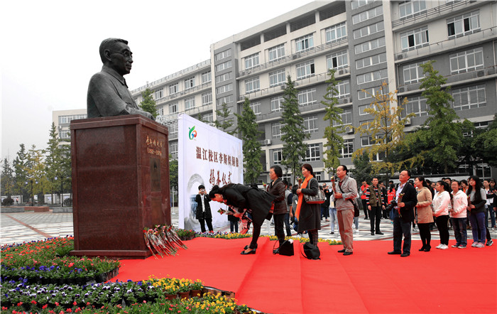 10月20日上午11时,作为学校60周年校庆的重要活动之一,学校为首任院长李斯炽先生在温江校区的铜像举行了隆重的揭幕仪式。党委书记马跃荣,校长梁繁荣,党委副书记、副校长沈涛,副校长余曙光,党委常委、副厅级调研员徐廉等学校领导出席了揭幕仪式,李斯炽家属代表、两百多名教师和学生代表参加了揭幕仪式。仪式由校长梁繁荣主持。