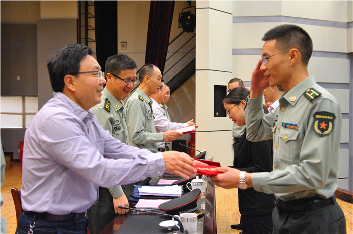 在省军区学生军训工作办公室副主任龚远洪上校宣读优秀论文获奖通报后,学生军训工作创新发展理论成果颁奖典礼随即举行,出席会议的首长、领导向获奖论文作者代表颁发了获奖证书。pp电子纪委书记延建明、武装部侯杰、兰小东共同撰写的《从军训的历史与现状浅析军训发展的方向》获大会一等奖。
