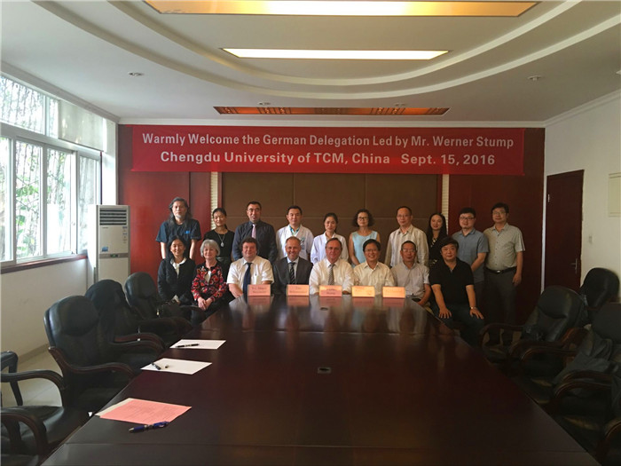 彭成代表学校对德国专家代表团一行的来访表示了热烈欢迎,他先是简要介绍了学校的基本情况,随后重点就pp电子在双方有意合作的领域——中药学、肿瘤及血液病防治等学科的研究现状向代表团进行了详细介绍。德方代表对中医中药表现出了浓厚的兴趣,双方专家就中药在肿瘤、血液等疾病的治疗中所起的作用及优势进行了热烈的讨论与交流,并就进一步合作达成了共识。