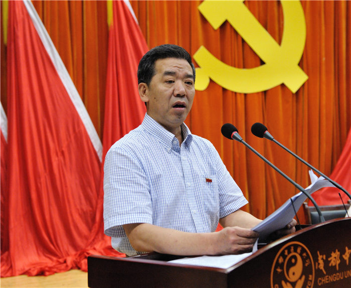 7月1日,学校庆祝中国共产党成立95周年暨2016年党建工作大会在温江校区百会堂举行。会议集中观看在人民大会堂举行的庆祝中国共产党成立95周年大会实况,表彰先进基层党组织、优秀党务工作者和优秀共产党员,党委书记马跃荣作题为《切实加强和改进党的建设,为实现“十三五”奋斗目标提供坚强保证》的重要讲话。党委副书记、校长梁繁荣主持大会。在家校领导、处级领导干部、受表彰的先进基层党组织负责人、优秀党务工作者和优秀共产党员,师生党员代表,校内民主党派基层组织和侨台联负责人等380余人参加大会。