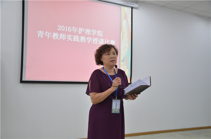 6月16日下午,护理学院举行2016年青年教师实践教学比赛,学院5个教研室推荐的9名优秀青年教师参加比赛。学校教学督导专家组组长傅春华、校级教学督导专家宋永慧、学校附属医院护理部主任王芳、第二临床医学院副教授冉启志、护理学院教学督导专家吴宗平应邀担任评委;比赛特设5名学生评委。比赛由护理学院副院长高静主持。学院领导、全体教师及研究生到场观摩比赛。内儿护理教研室杨静获比赛第一名。