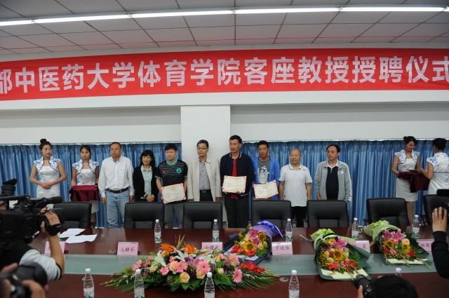 体育学院院长邬建卫为5位受聘嘉宾颁发客座教授聘书,正式聘请前四川全兴足球俱乐部主教练、现四川足球协会校园足球办公室主任余东风,前中国国家足球队队长马明宇,前国家队球员姚夏、邹侑根,前成都谢菲联足球俱乐部副总经理罗晓维5人为pp电子官方网站体育学院客座教授。罗晓维代表客座教授发言,表示将通过指导运动员训练、开展足球师资培训等方式,把更专业足球教育理念带到成中医,努力帮助学校提高足球运动水平。