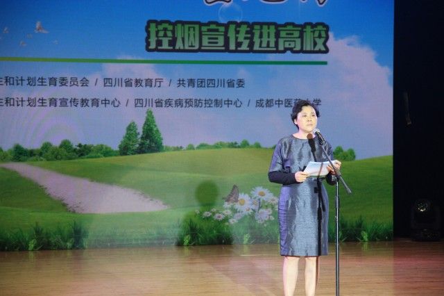 5月31日,由四川省卫生和计划生育委员会、四川省教育厅及共青团四川省委主办,四川省卫生和计划生育宣传教育中心、四川省疾病预防控制中心及pp电子官方网站承办的控烟宣传进高校活动在pp电子温江校区百会堂演播大厅举行。省卫生厅党组成员、机关党委书记冉茂琴,省卫生计生委宣传处长唐宇驰,省教育厅体卫艺处调研员卢旭,团省委宣传部部长陈星宇,省卫生计生宣教中心主任刘大鹏,省疾控中心党委副书记,纪委书记钟丽,pp电子党委常委、副厅级调研员徐廉和18所高校近400名学生参加启动仪式。