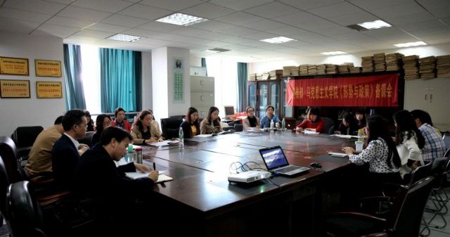 4月14日下午,党委宣传部、马克思主义学院牵头组织召开2016年学期大学生形势与政策课集体备课会,马克思主义学院院长刘东梅、形势与政策课教研室成员及全校近30名专兼职教师参加交流学习。