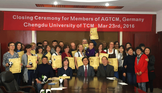 本次德国传统针灸中医学会短训班于3月7日开始,历时三周时间。在此期间,来自德国及奥地利的学员们分别在针灸、推拿、骨科、中医内科等科室进行临床实习,听了各种专题理论讲座,并先后参观了中药材市场、金沙遗址、峨眉山风景区等极具四川特色的文化景点。在毕业典礼上,学员们表示通过此次的学习,他们对于中医药及中国文化有了新的认识,希望以后还能来成都进一步学习中医。会后,短训班学员还表演了带有巴伐利亚地区风情的民间歌曲以感谢在此次培训过程中老师们的辛勤工作和翻译们的帮助。