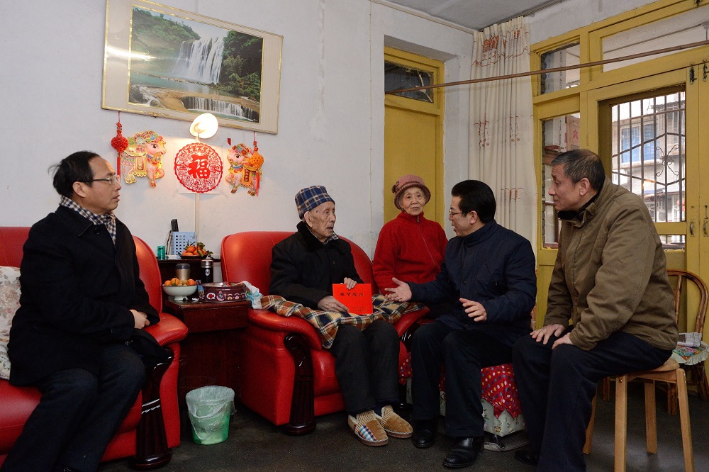 1月28日上午,学校党委书记马跃荣、校长梁繁荣、副厅级调研员徐廉带领学校党政办公室、组织部、宣传部、离退休工作处走访慰问老红军、老领导、老党员代表龚锦文、郝计友、魏云祥等老同志。
