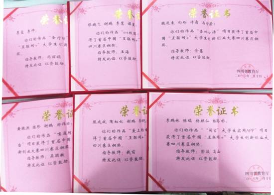 1月9日至10日,由四川省教育厅主办的首届中国“互联网+”大学生创新创业大赛四川赛区颁奖典礼在电子科技大学清水河校区举行。学校党委副书记、副校长沈涛,教务处副处长王世宇、校团委书记佟枫带领学校获奖团队指导老师代表和学生代表参加典礼。pp电子“食疗坊”项目获得银奖,“杏林心语”等5个项目获得铜奖。