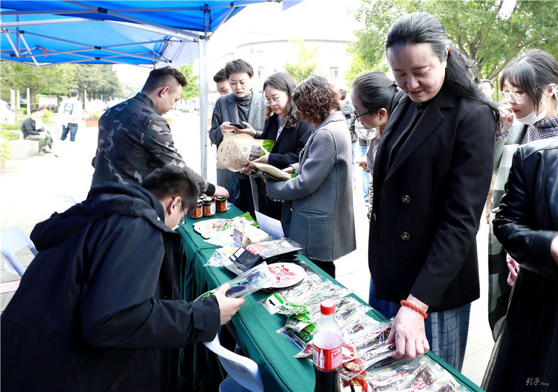 参加活动的校领导、各分党委党总支负责人,各学院、部门分管扶贫工作领导及联络员,与各学院学生代表一起,共同参观了主题为“摆脱贫困”的pp电子官方网站脱贫攻坚成效展,并在学校定点帮扶的得荣县、盐源县扶贫特色农产品展销区,品尝体验、“以购代捐”扶贫农产品。