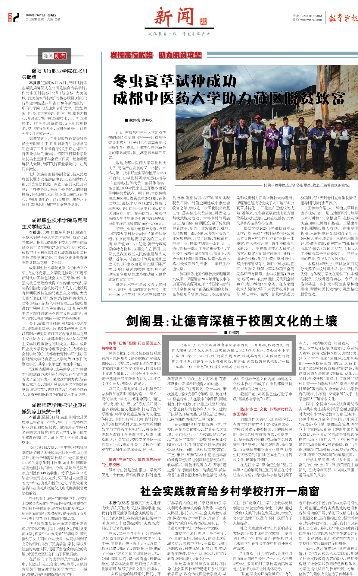 得荣县木格村是藏区深度贫困村,也是野生虫草的重要分布区。该村于2019年完成“两不愁三保障”脱贫指标,退出贫困村序列,顺利实现脱贫目标。时值全面建成小康社会收官之年,学校进一步深化脱贫攻坚工作,落实精准扶贫措施,巩固定点帮扶地脱贫成效。木格老村气候恶劣、土壤贫瘠、资源匮乏,除了传统的种养殖业,新的产业发展极其艰难。几位帮扶干部,不断思考探索长效产业发展思路,开展了玫瑰、花椒试种,推进土豆、蜂蜜代购等一系列项目。通过帮扶干部两年多的积极努力,在学校中医药科研专家帮助指导下,结合当地村情民情实际,探索出适合木格村长效发展的产业——半野生种植虫草。