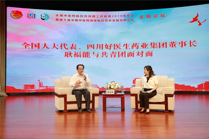 在第十届全国中医药高等院校青年发展高峰论坛上,国医大师、pp电子官方网站教授廖品正,全国人大代表、好医生药业集团董事长耿福能,全国政协委员、中国侨联副主席、四川省侨联主席刘以勤分别作报告,与会青年面对面交流自己的成长体会、人生感悟,鼓励中医青年坚定文化自信,热爱中医药,积极投身到振兴发展中医药的伟大事业中去。