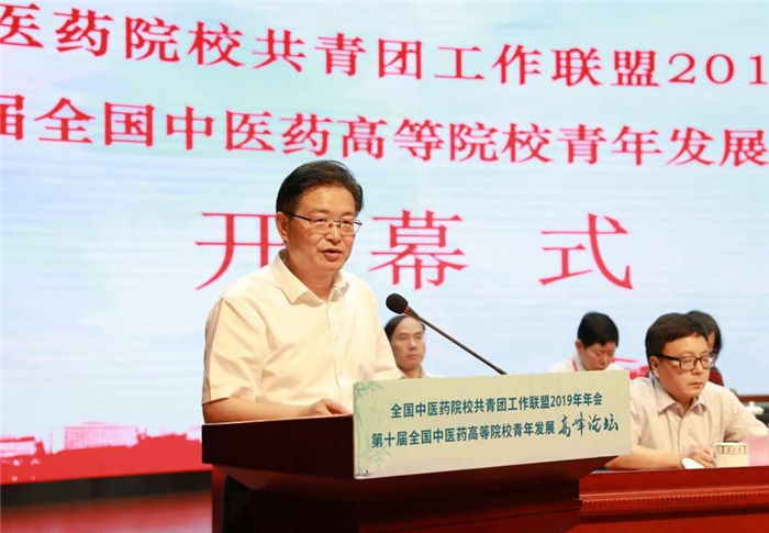 刘毅致开幕词指出,高校共青团工作是高校思想政治教育工作的重要组成,其工作成效直接关系到培养什么样的人、如何培养人以及为谁培养人这个根本问题。相信在当前全团大抓基层、大抓学校的背景下,全国中医药院校共青团联盟定能群策群力、潜心探索、大胆实践、久久为功,努力开创联盟共青团工作的新局面。刘毅说,本届年会时值新中国70周年和五四运动100周年,中医药院校应充分利用好此次研讨机会,认真学习贯彻习近平总书记在纪念五四运动100周年大会上的重要讲话精神,围绕论坛主题,把思想和行动统一到党中央对青年成长成才的新要求新部署上,教育引导新时代青年师生弘扬五四精神,担当时代责任,在密切联系、关心关爱、教育引导青年师生上下功夫,以优异的成绩和良好的面貌献礼新中国70华诞。
