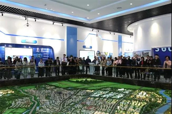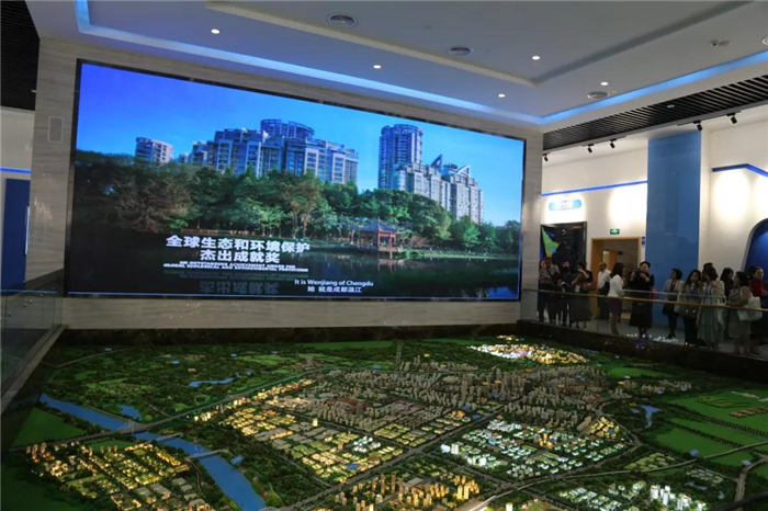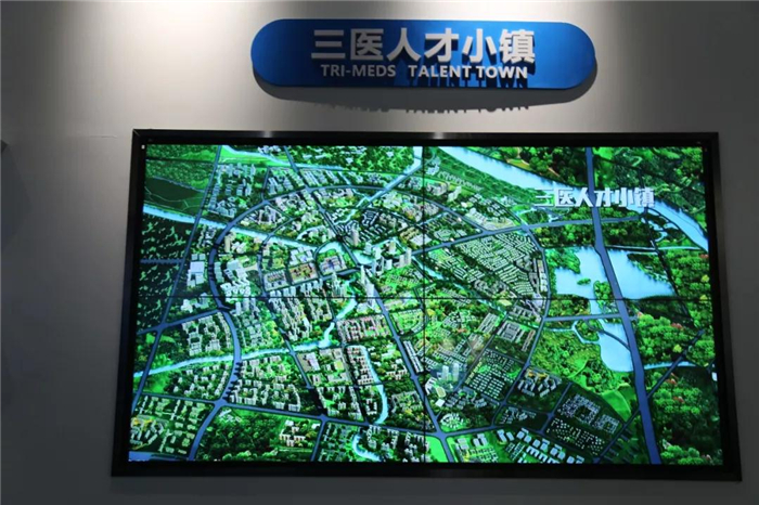 在成都医学城三医创新中心,参观人员在LED巨幕影片与360度环形4D影院,观看了介绍温江城市发展成就与城市规划的宣传片,并通过壁挂式电子沙盘及触控式互动展示墙,从全球医学发展趋势、成都总体定位、温江规划定位、医学城规划定位、医学城平台搭建(公共技术平台及公共服务平台:信息平台、金融平台、人才平台、政务服务及孵化平台)几个方面循序渐进的了解到温江城市发展主题定位,以及医学城发展战略。