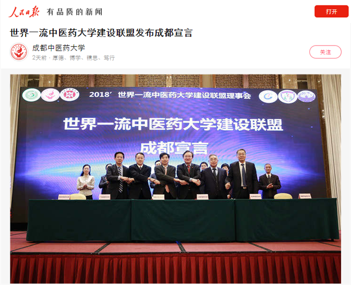 联盟成员北京中医药大学、上海中医药大学、广州中医药大学、pp电子官方网站、南京中医药大学、天津中医药大学共同签署《世界一流中医药大学建设联盟成都宣言》。《成都宣言》指出,为把中医药学继承好、发展好、利用好,加快中国特色、世界一流中医药大学建设步伐,发起组建世界一流中医药大学建设联盟,以共商、共建、共享为宗旨,致力于培育中医药英才,致力于发展中医药学术,致力于贡献中医药服务,致力于传承中医药文化,强化自身建设,强化责任担当,共同探索符合中医药特色和规律的一流大学与一流学科建设之路,构建独具中国特色的医学与健康服务人才培养体系,勇做先行者、探路者,为健康中国、文化强国建设贡献中医药力量,为中国中医药高等教育改革发展积累经验、提供示范,努力汇聚起振兴中医药事业的磅礴力量!