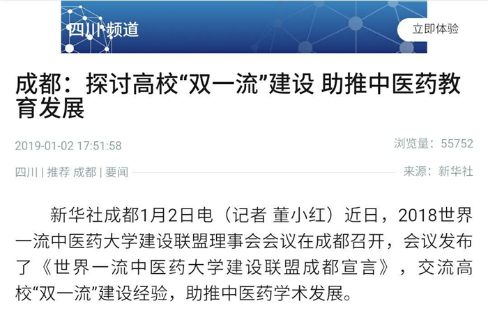 近日,2018世界一流中医药大学建设联盟理事会会议在成都召开,会议发布了《世界一流中医药大学建设联盟成都宣言》,交流高校“双一流”建设经验,助推中医药学术发展。