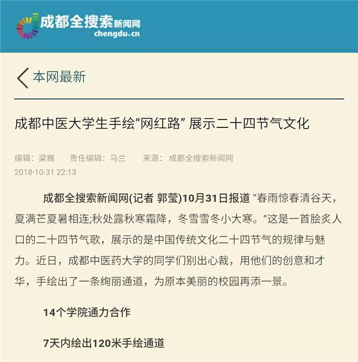 成都中医大学生手绘“网红路” 展示二十四节气文化