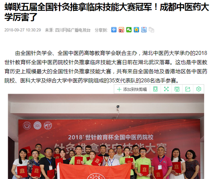 蝉联五届全国针灸推拿临床技能大赛冠军!pp电子官方网站厉害了
