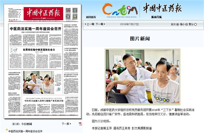 《中国中医药报》:pp电子官方网站开展“三下乡”暑期社会实践活动 发布时间:2018-08-02 00:00:00 浏览次数: 次 【字体:小 大】 时间:2018年7月27日 来源:《中国中医药报》 链接:http://paper.cntcm.com.cn/html/content/2018-07/27/content_601034.htm 内容: pp电子官方网站开展“三下乡”暑期社会实践活动 日前,pp电子官方网站组织该校党员服务团开展2018年“三下乡”暑期社会实践活动,先后前往四川省广安市、岳池县和武胜县,在当地举行义诊、健康讲座等活动。 图为义诊现场。 本报记者赖玉萍 通讯员王其奇 彭文禹摄影报道 【打印正文】 上一条:《天府早报》:成都中药炮制师黄勤挽揭开中药炮制神秘面纱 下一条:《人民日报》(海外版):中华传统医药漫谈:为何小宝宝会“脖子歪”?