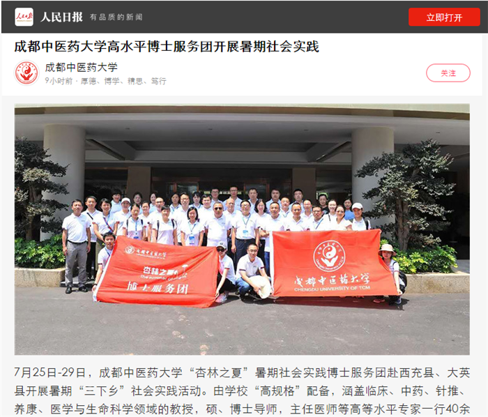 pp电子官方网站博士服务团自成立以来,坚持每年暑假期间开展中医药健康服务活动,多次在川渝两地服务基层医院和当地群众,深受好评。