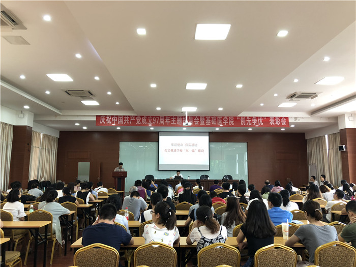 临床医学院/附属医院党委书记常德贵在庆祝大会上向全体党员作年度党建工作报告;药学院党委开展迎七一党务工作者培训专题讲座;针灸推拿学院/第三附属医院党委邀请马克思主义学院青年教师马飞为党员讲《习近平新时代中国特色社会主义思想-新时代新特点》;眼科学院党委书记段俊国以《不忘初心,永远奋斗,创建中国眼科新中心》为题讲党课;宣传部副部长罗晓文应邀为养生康复学院党员分享《以小见大——习近平七年知青岁月的启示》;民族医药学院党委主题报告《科技扶贫太阳谷,中藏药材强产业》由扶贫干部王张主讲。