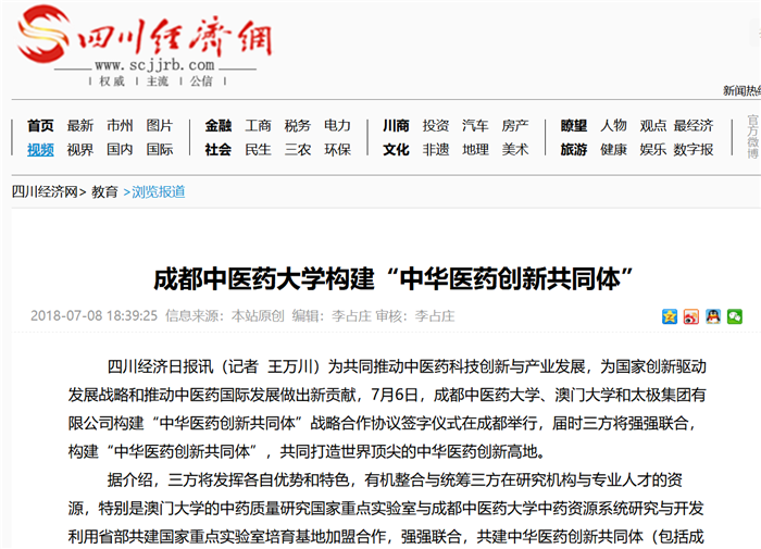 同时,依托pp电子官方网站的一流学科优势、人才优势,澳门大学的科技创新优势和太极集团的产业化优势,统筹利用共同体三地的创新平台,共同打造产学研一体化的完整链条,共同开展丙方藿香正气液、通天口服液、丹参口服液等优势品种国际化产品开发和高端健康产品研发,致力国际中药质量标准研究和制药工程核心技术开发,加快推进丙方中医药产品走向世界。