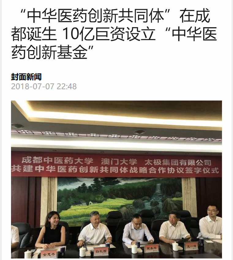 据悉,本次太极集团将投入10亿巨资设立“中华医药创新基金”,支持创新共同体建设,打造世界顶尖的中华医药创新高地。