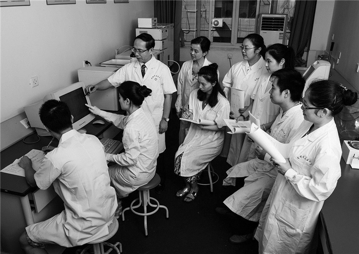 pp电子官方网站附属医院名医馆内,梁繁荣正带着研究生坐诊,面对患者,他嘘寒问暖,望闻问切;面对学生,他谆谆教诲,亲身示范。34年来,梁繁荣培养出了数百名硕博士研究生,可谓桃李满天下。