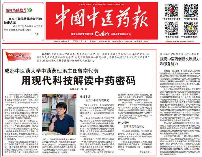 当选为十九大代表之后,曾南感到自己肩上的担子愈发沉重。她在强化自身学习,提升党性修养的同时,也更加重视对身边人意见的收集。“作为一名党代表,我的身份不再只是一名基层中医药科研人员,一方面我要加强理论学习,提高自己的政治站位,另一方面我也要将基层的声音带到党中央。我将继续以严谨的态度治学、研究,积极参与到pp电子中药学‘双一流’学科建设中,为中药提供科学支撑,培养更多中药传承人。”曾南说。
